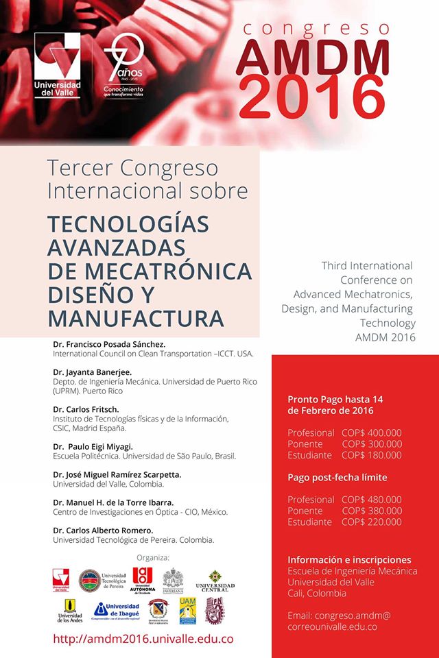El egresado de la Universidad del Valle Francisco Posada Sánchez, investigador Senior en el Consejo Internacional en Transporte Limpio de USA quien dirigió el proyecto que puso al descubierto los problemas de emisión de gases de vehículos de la empresa Volkswagen, será uno de los conferencistas del Tercer Congreso Internacional sobre Tecnologías Avanzadas de Mecatrónica, Diseño y Manufactura –AMDM, que se realiza en Cali, del 13 al 15 de abril de 2016.
