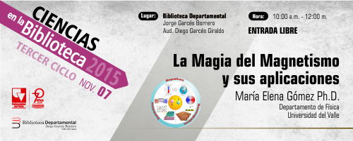 El sábado 07 de noviembre, María Elena Gómez de Prieto, docente de Física de la Universidad del Valle, presentará una visión del magnetismo enfocada a las diferentes aplicaciones que tiene este fenómeno, gracias al estudio de materiales producidos a escala nanométrica que permiten el desarrollo de nuevas aplicaciones.