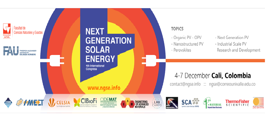 Con el fin de discutir los avances más recientes y relevantes de la tecnología solar, expertos mundialmente reconocidos en el campo de la fotovoltáica participarán desde el 4 de diciembre en el ‘IV Internacional Next Generation Solar Energy – NGSE2017’ , evento organizado por la Facultad de Ciencias Naturales y Exactas de la Universidad del Valle, el Centro de Excelencia de Nuevos Materiales – CENM y la Universidad Friedrich-Alexander en Alemania.