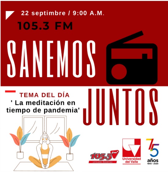 El martes 22 de septiembre en nuestro programa sanemos juntos estaremos hablando de «La meditación en tiempos de pandemia» con los expertos,  Jorge Rentería y María Amelia Bueno.